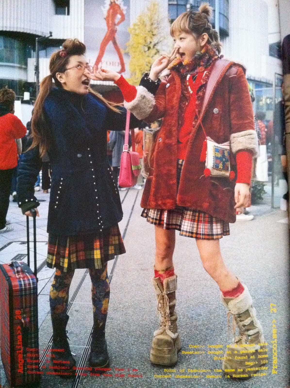 Dans ce livre est rassemblé des photographies qui proviennent toute d’un magasine japonais: fruits. Ce magazine a été publié entre 1994 et 2002, un magazine pour les ados passionnées par la mode urbaine. Shoichi Aoki a photographié ces fashionistas pendant 8 ans et les meilleurs photos sont dans cette édition. On y retrouve l’idée du blog the sartorialist dans un esprit manga et déganté.