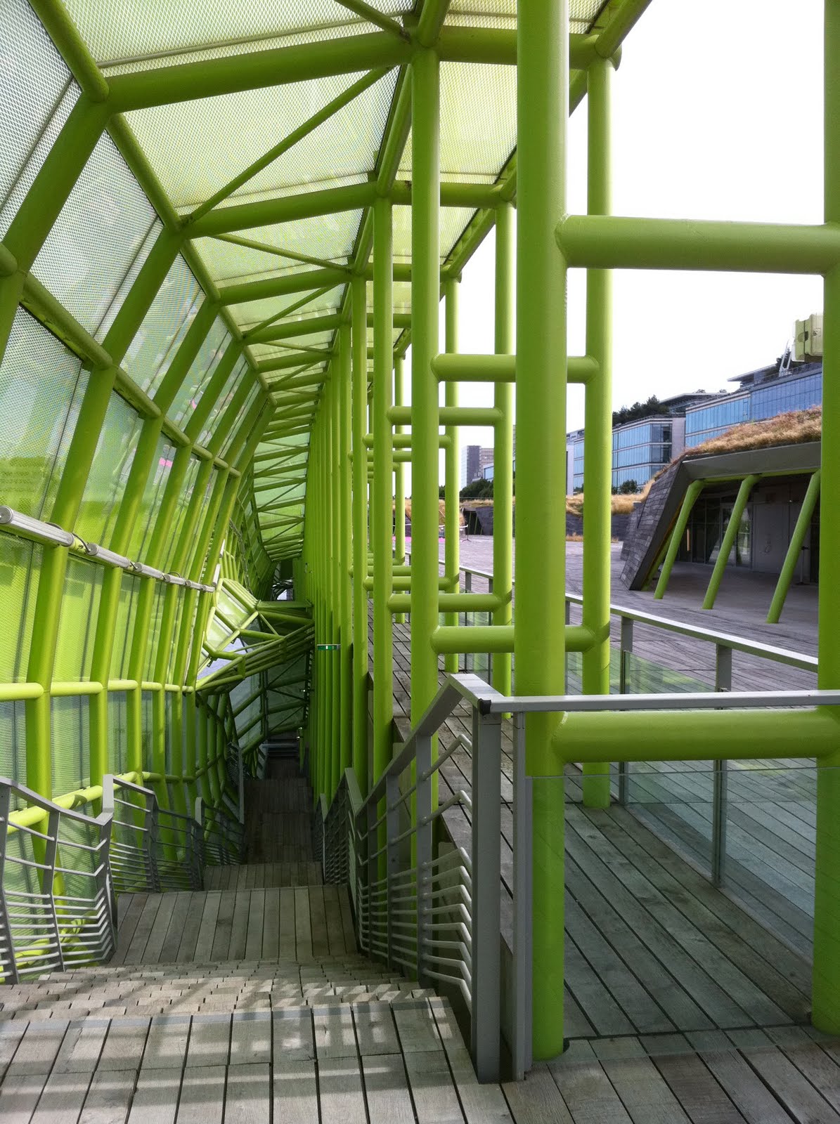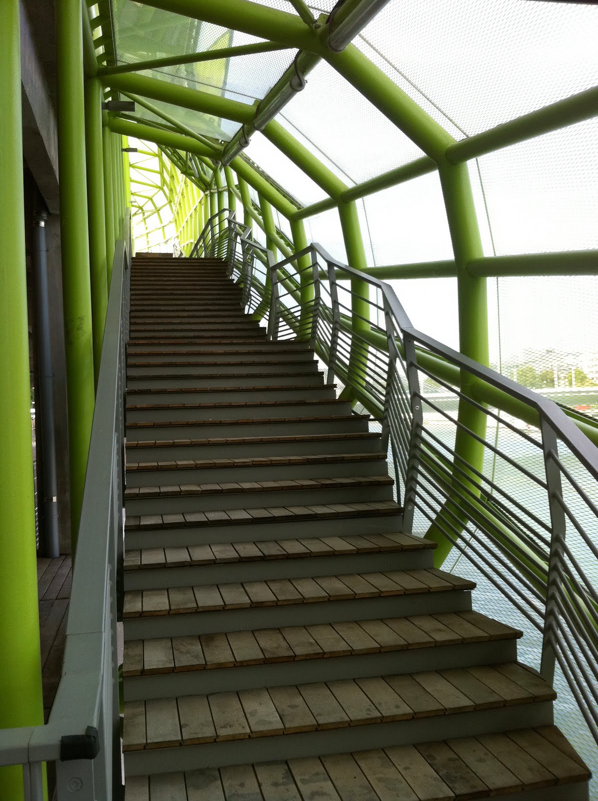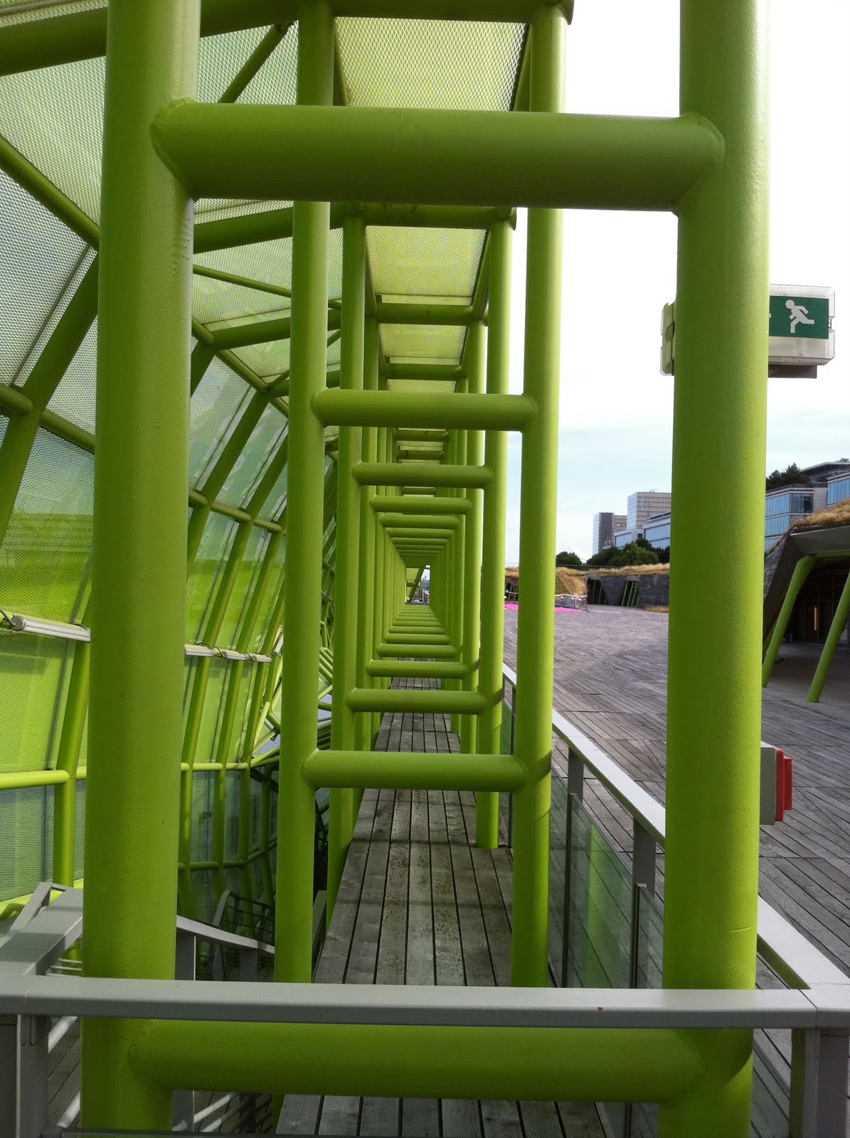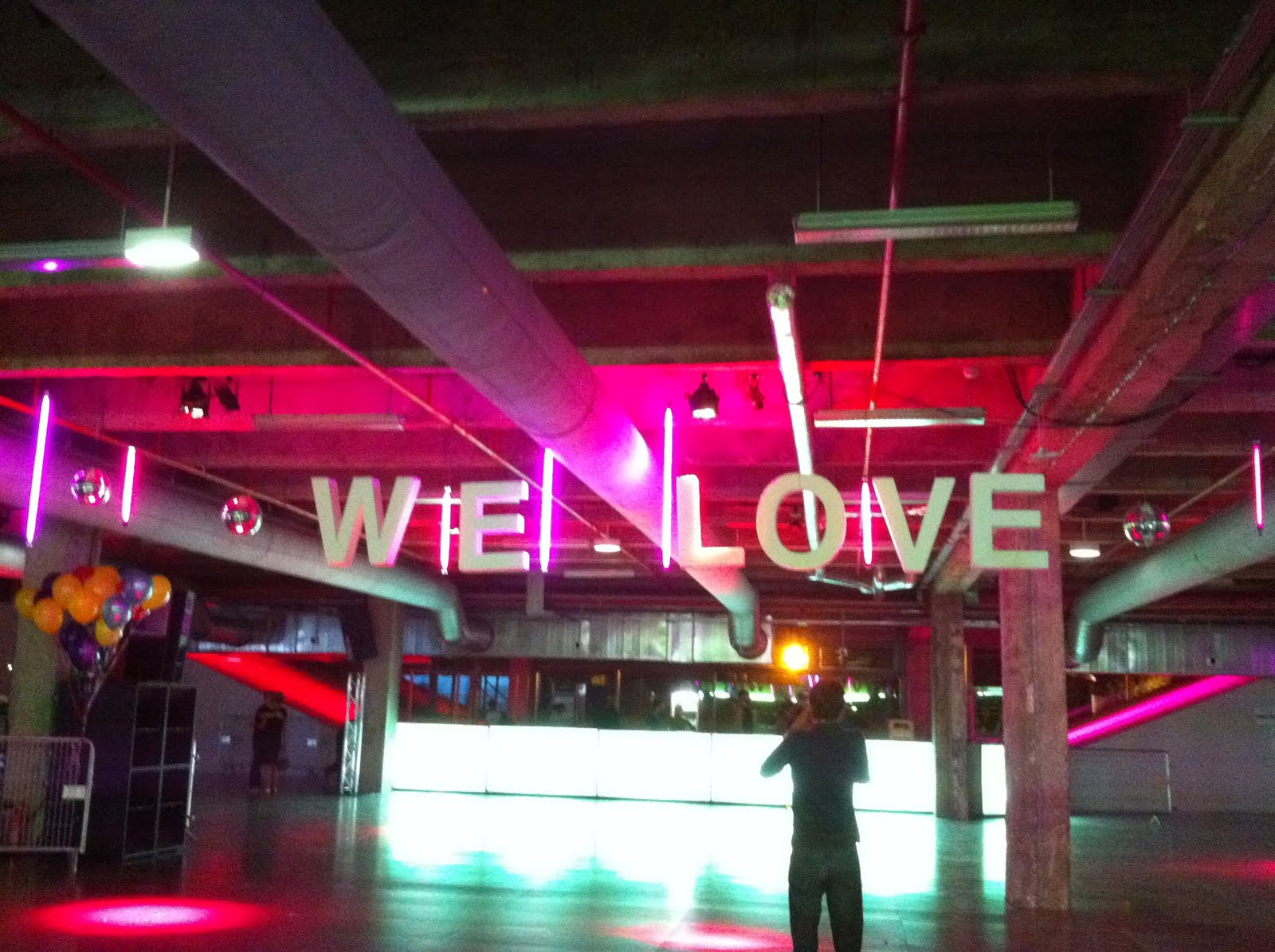 Samedi j’ai passé ma journée à la cité de la Mode est du design. Ce bâtiment tout vert que l’on aperçoit près de Bercy en bord de scène. A l’intérieur se préparait la dernière We Love, la We Love Fantasy avec Ellen Allien, Ben Klock, et The Whitest Boy Alive. Cette We Love nous a encore accueilli dans un endroit peu commun. La salle principale: un gigantesque loft ou très beau parking souterrain. Des ballons gonflés à l’hélium, des néons, des transats et des nuages en polystyrènes. Sur le toit: la terrasse fumeuse. Une moquette rose (très rose) avec vue sur la Seine, toits de paris et péniches.