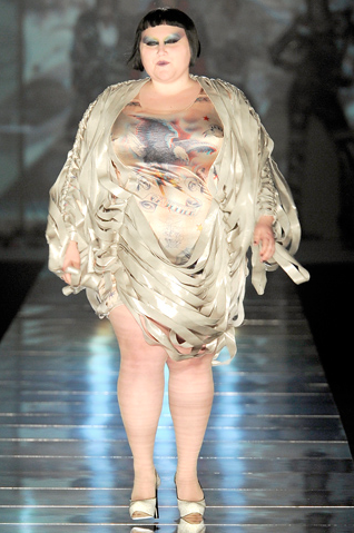 Hier le couturier Jean Paul Gautier a fait défiler Beth Ditto.