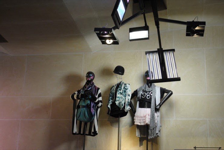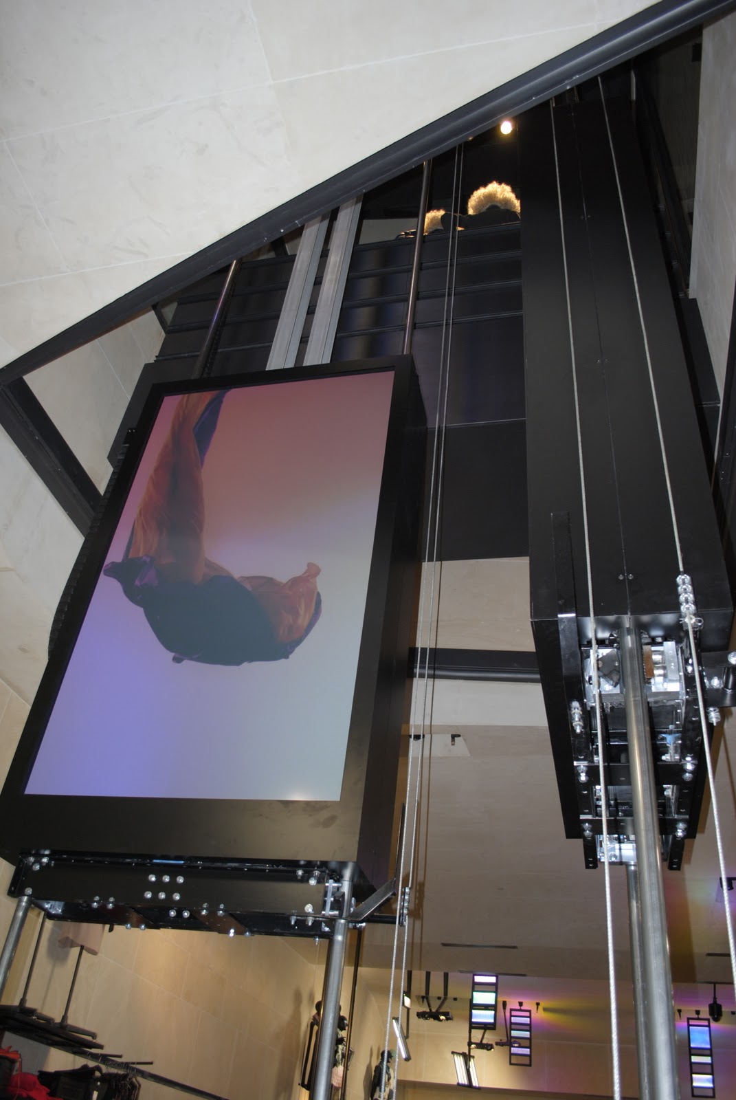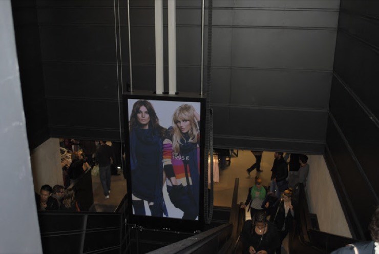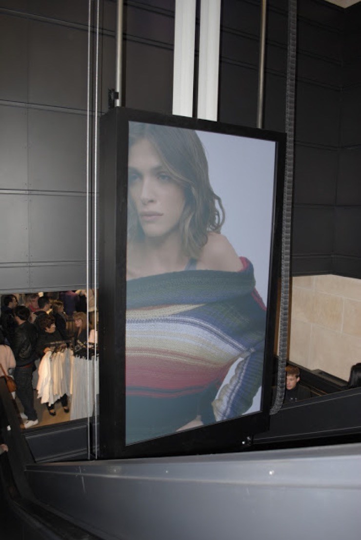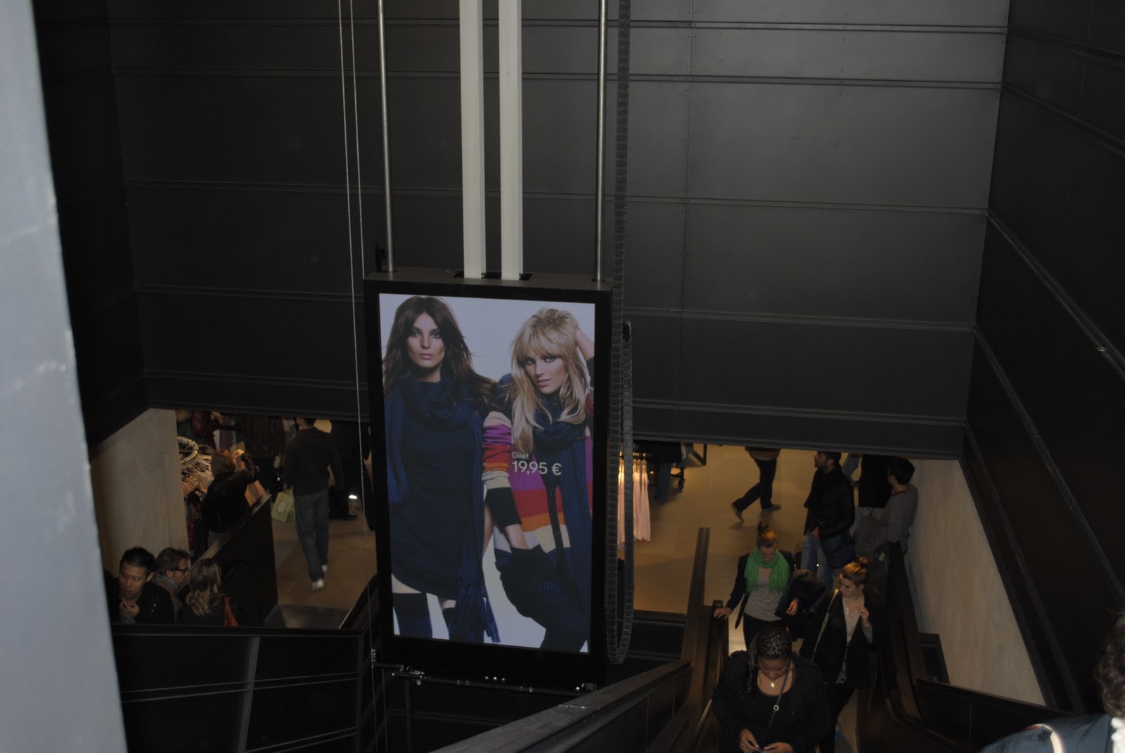 Après ce moment plein de joie il faut le dire, me voila dans H&M. J’adore le mélange matériaux. Beaucoup de métal noir! ascenseurs à gogo avec écrans accrochés, ce qui fait que les écrans montent et descendent. Canapés pour les parents et petits amis qui patientent. On règle la couleur de la lumière dans les cabines d’essayage ainsi que l’intensité. L’éclairage est extra ordinaire. Il surgit du plafond.
