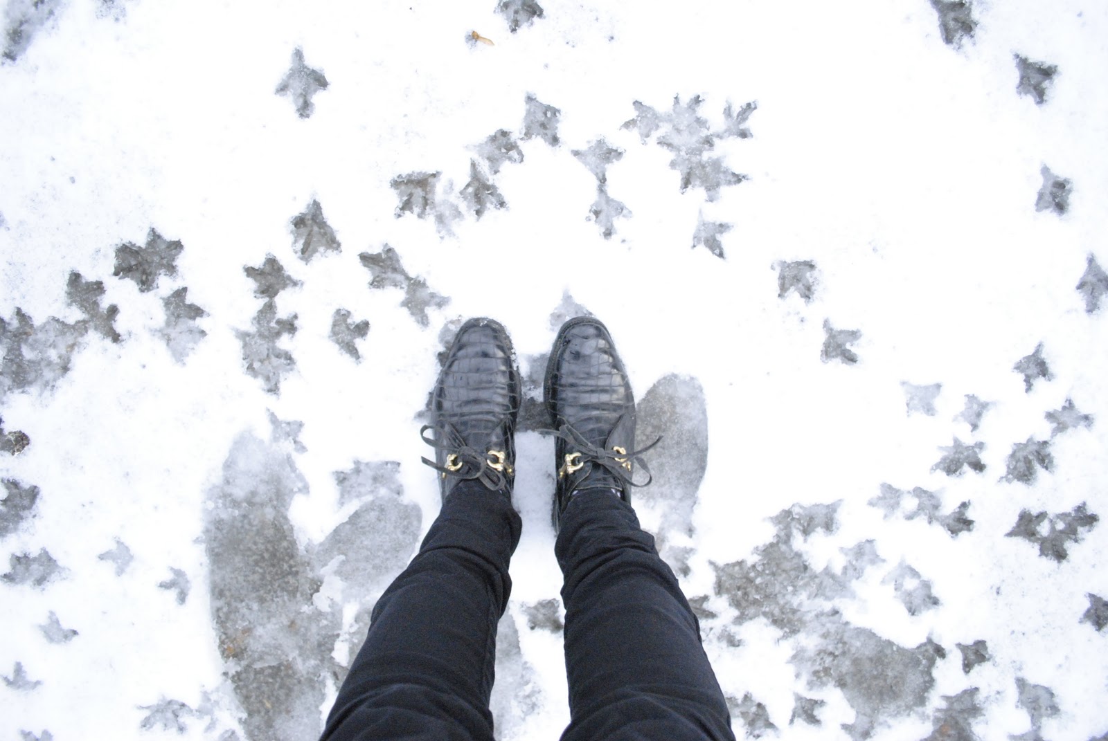 c'est trop marrant avec les petites pattes de canard dans la neige!
