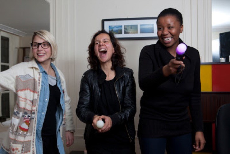 Une soirée entre filles, dans un lieu aménagé pour se sentir comme invitée chez une amie. Plusieurs TV étaient installées avec la nouvelle playstation move.
