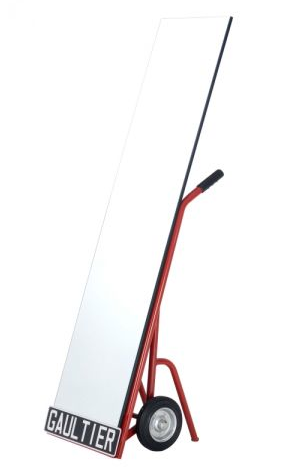 Pour ses 50 ans Roche Bobois invite Jean Paul Gautier à designer une série de meubles salon et chambre à coucher. Des meubles décalés mais portant une forte signature du couturier. Les canapés sont habillés en marinière, les tapis portent des pompons, les draps sont rose poudre, le fond de l’armoire est tatouée (tatouage: coup de coeur de JPG), et la dentelle sérigraphiée est omniprésente.