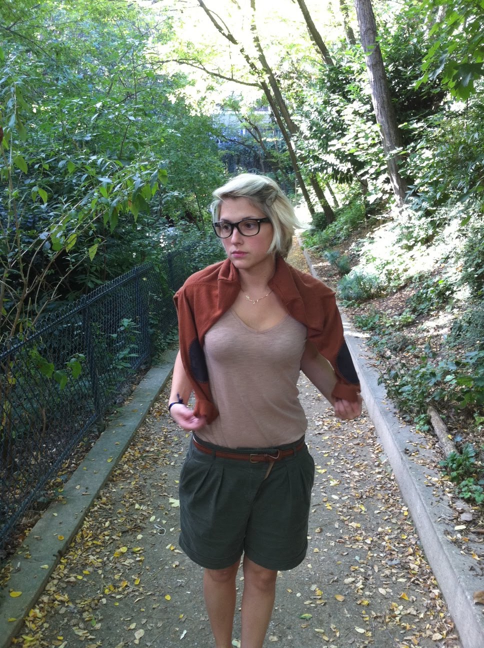 17 septembre 2010Une tenue avec de nouvelles pièces. Un pull couleur rouille, avec coudes renforcés daim, H&M.