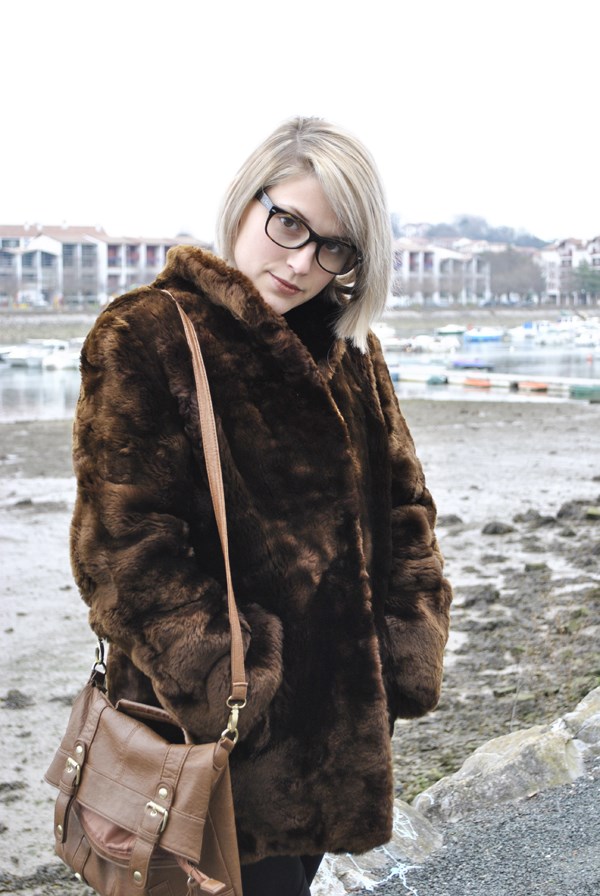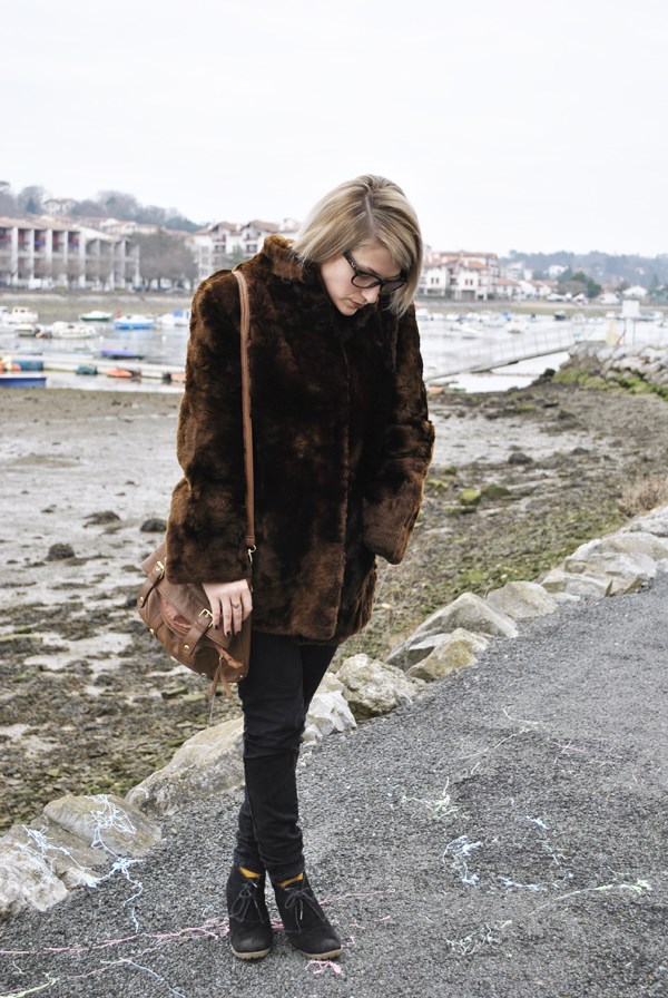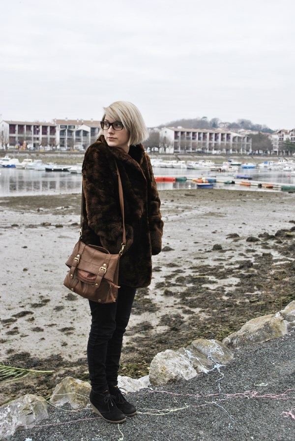 Faux Fur (placard Mamie), slim noir ZARA, cartable Primark, compensées fripe,