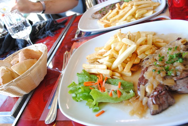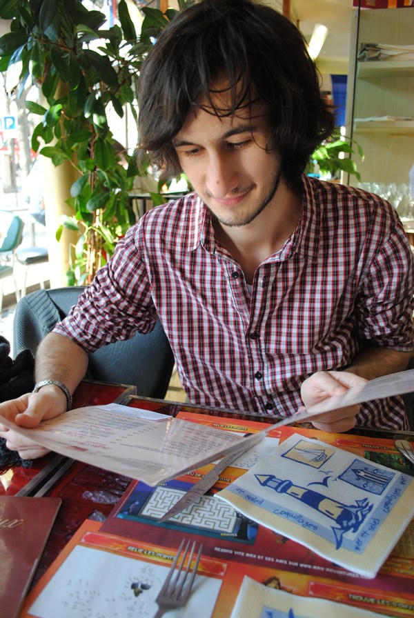 (les cacahuètes, les patrons à moustaches et la décoration) alors ça n’a pas manqué j’ai été invité dans un beau restaurant ce midi. J’ai reçu un magnifique cadeau pour symboliser tout ça et j’ai mangé des frites !!! Enfin voilà vous avez un aperçu de la déco, des belles serviettes ambiance plage (rien à voir …) et aussi de ma tenue (avec mes nouveautés Asos !!!) :