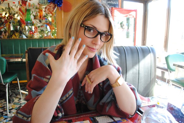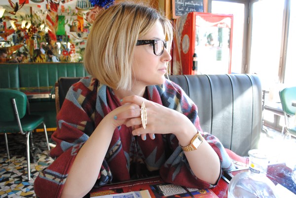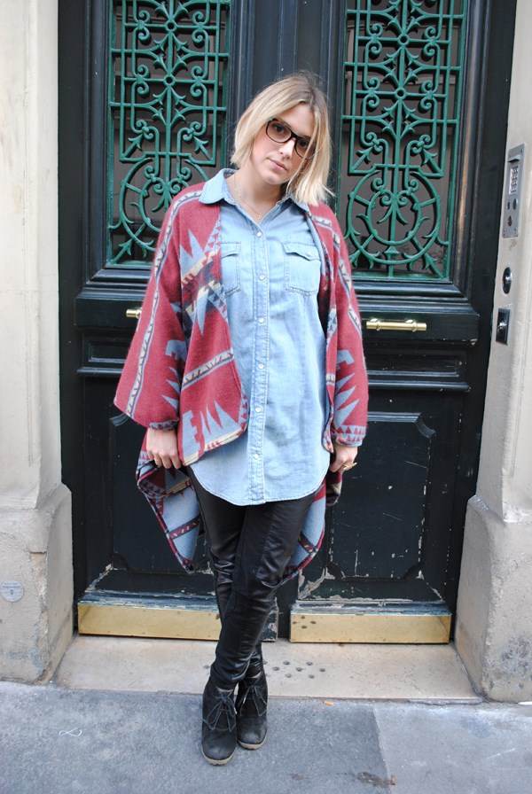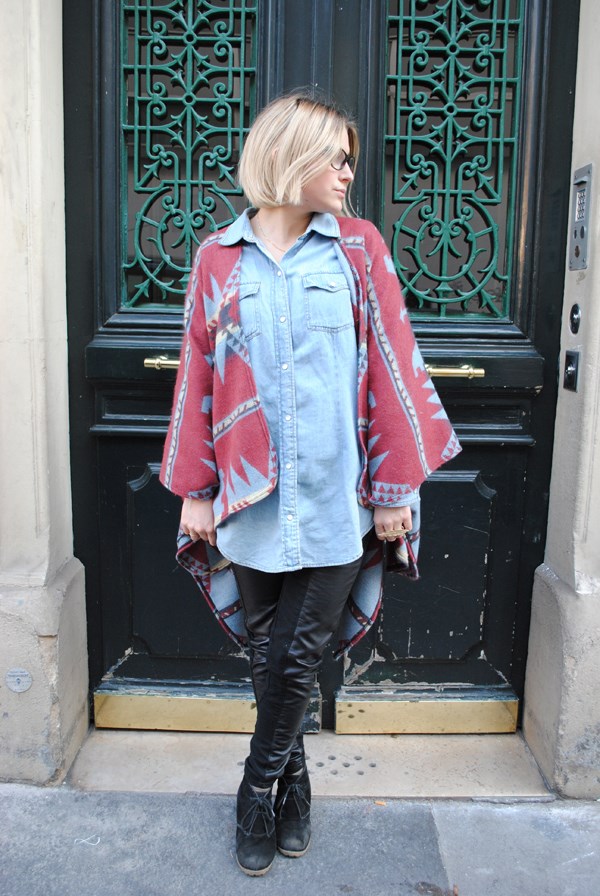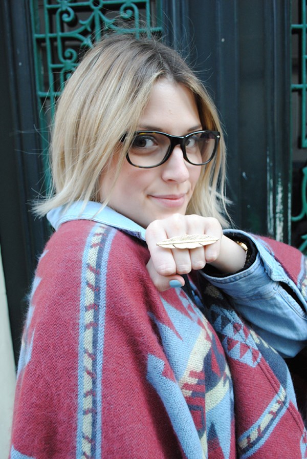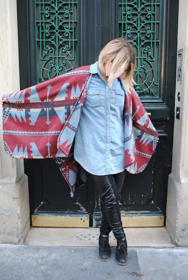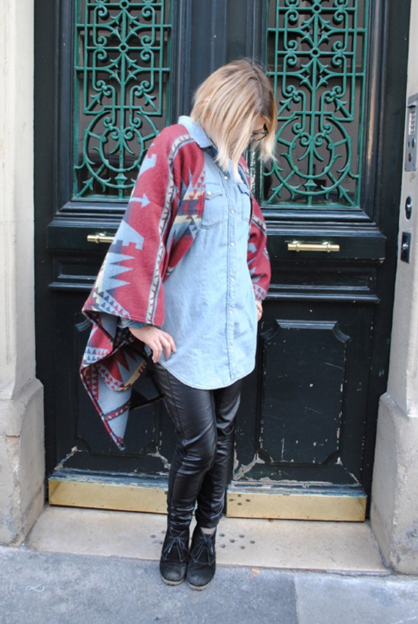 Cape navarro Asos, chemise en jean Primark, slim coton et simili cuir C&A, compensées frippe, bague Asos, montre casio et un nouveau vernis bleu.