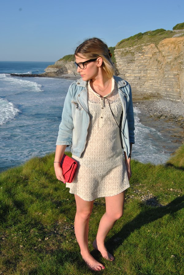 Le perf' en jean avec cette douce robe dentelle, c'est très joli!