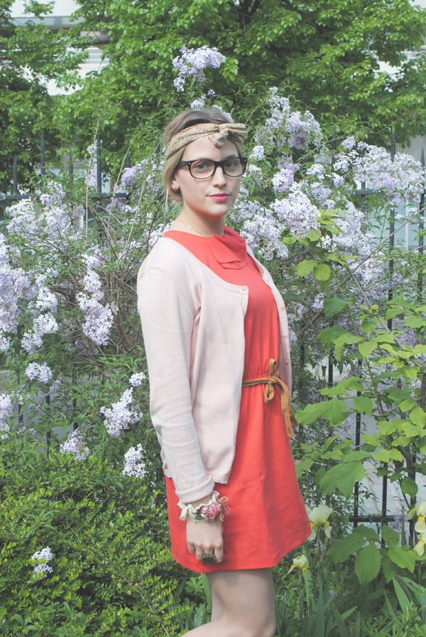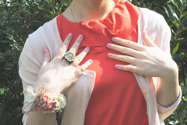 Robe Zara Kid, Gilet Etam, bague Asos, bracelet créateur, vernis Barry M et H&m et ce beau bandeau est une création d’une amie à ma maman.