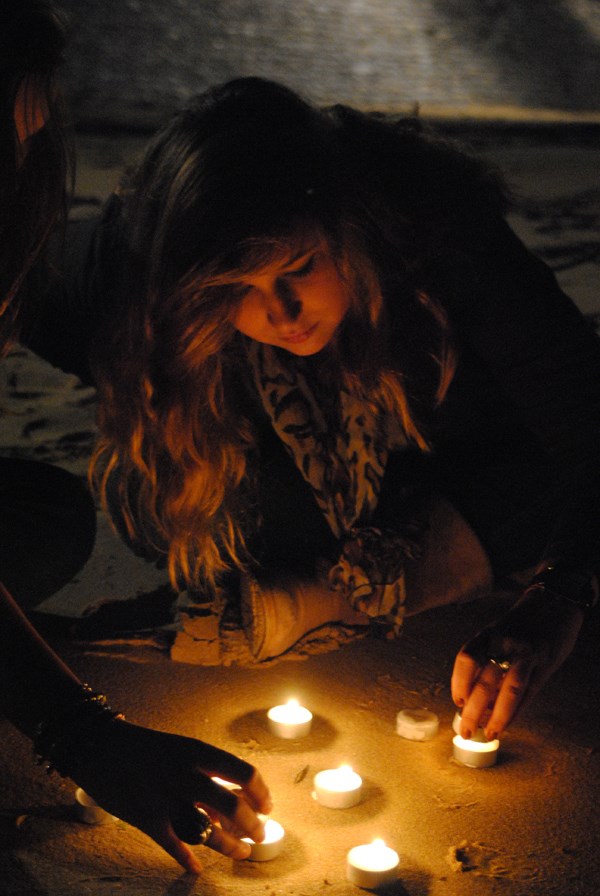 Semaine à Saint Jean de Luz, soirée sur la plage. Julie et Juliette. Deux amies qui se sont prêtées au jeu d’une séance photo, pleine de sable, toute mouillée, au claire de la lune mon ami pierrot et de la bougie.