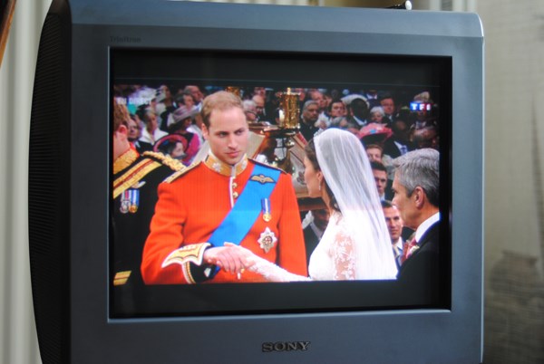 1 900 personnes arrivent 1 par 1 dans l’abbaye depuis ce matin et sont suivies par 2 milliards de personne. Et les filles portent des chapeaux, des chapeaux et des chapeaux…