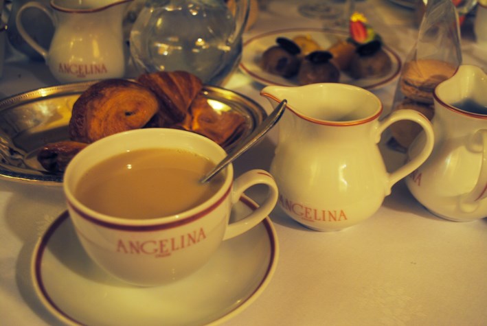 Jeudi matin j’ai petit déjeuné chez Angelina (viennoiseries, thé, macarons, gâteaux…).