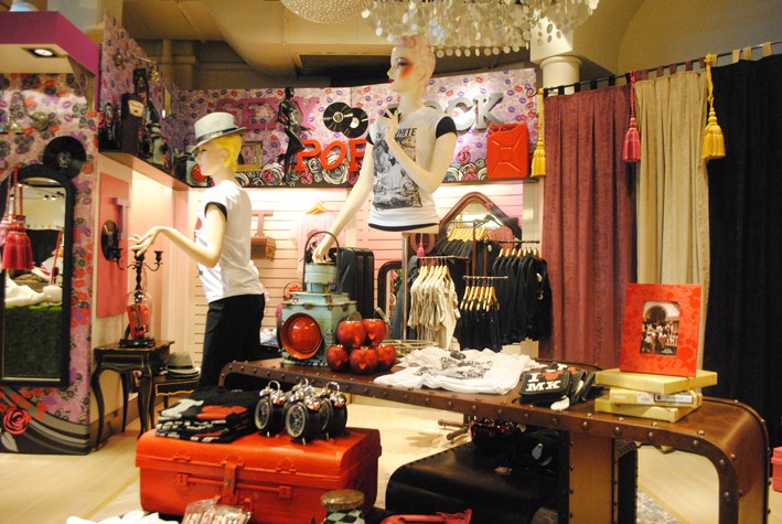 Puis nous avons découvert en avant première la nouvelle boutique de Disney Village : « Disney Fashion » qui ouvre samedi 11 juin 2011. Un tout nouveau concept en 3 univers : romantique, glam rock et color bloc. Des vêtements, accessoires, bijoux… sont vendus pour les femmes. Sont présentent par exemple les  marques JCDC et Disney couture (pour la première fois en vente en France). Le concept est unique à la boutique et accueillera bientôt des tee-shirt recyclés à partir de coton et bouteille de Coca en plastique (amazing!).