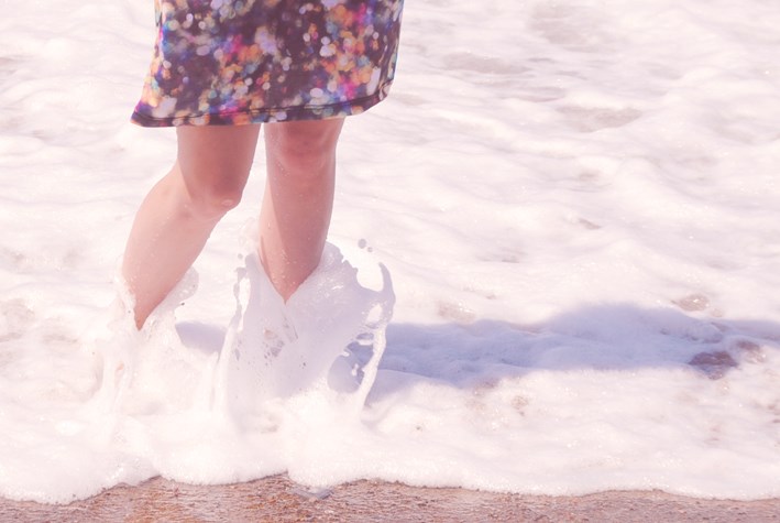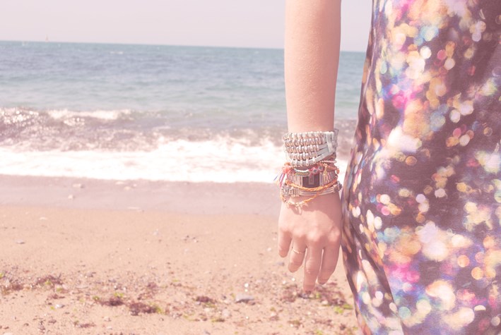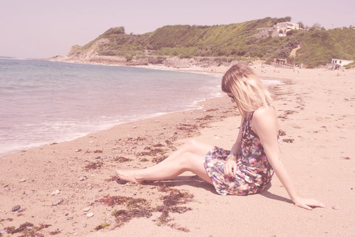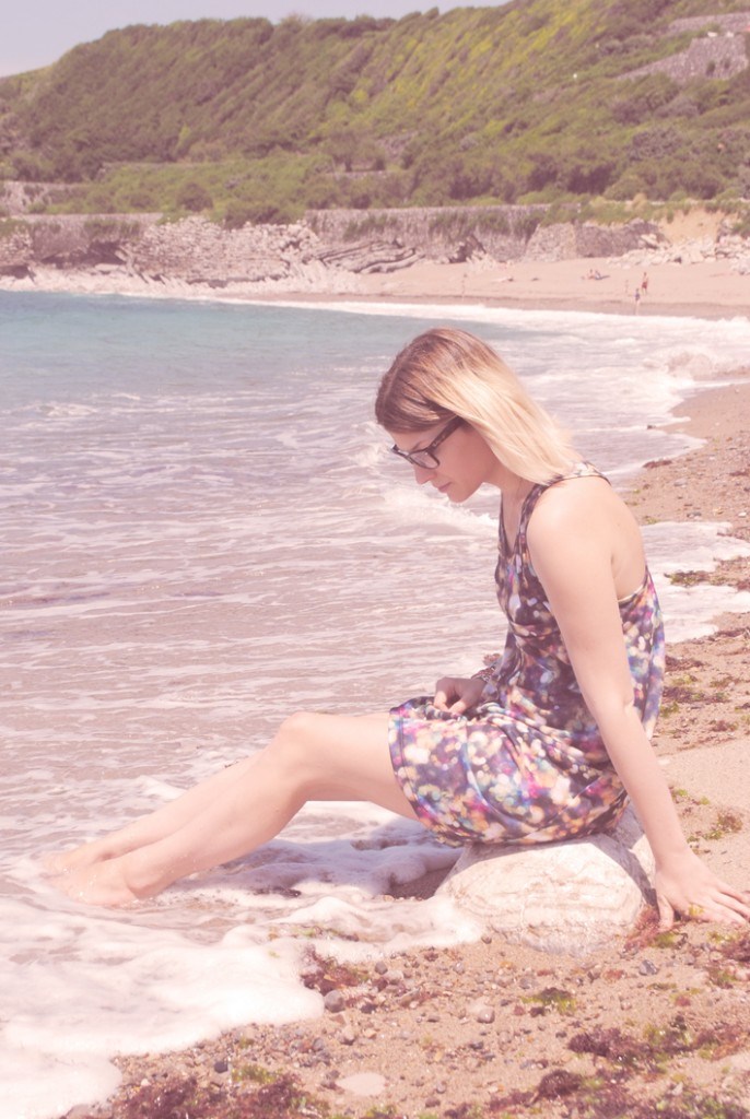 Tu es toute jolie dans cette petite robe colorée au bord de l'eau!