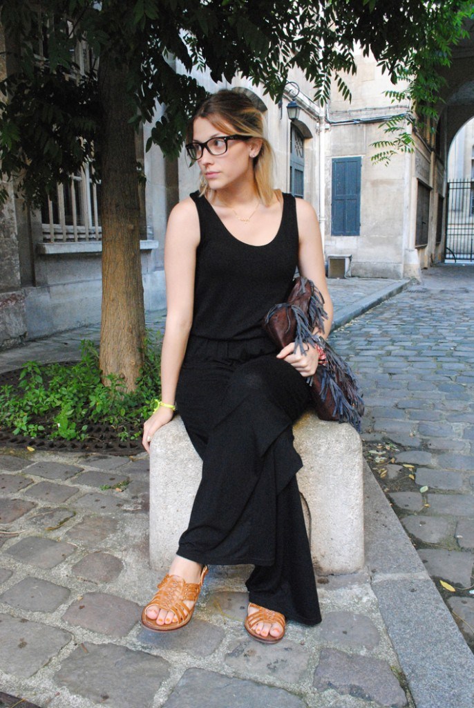 J’avais envie de vous présenter une petite nouvelle : cette combi noire! Je n’ai jamais eu de combi longue mais j’ai craqué sur celle là avec sa coupe flare!!! Je porte aussi des trouvailles londoniennes (lunettes de soleil, bracelet, chaussures…).