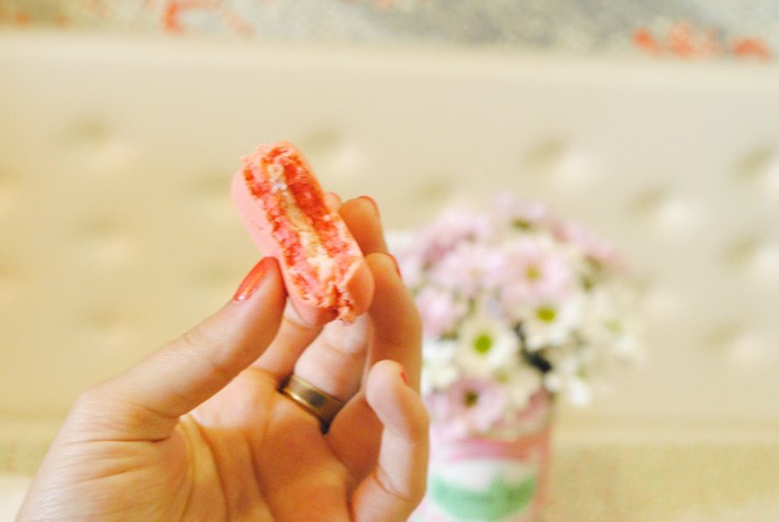 Le Pâtissier Hugues Pouget de Hugo&Victor était là et nous a offert des macarons à la fraise et à la framboise (du rose du rose du rose), des choux à la verveine et une tarte pamplemousse (vous salivez?).