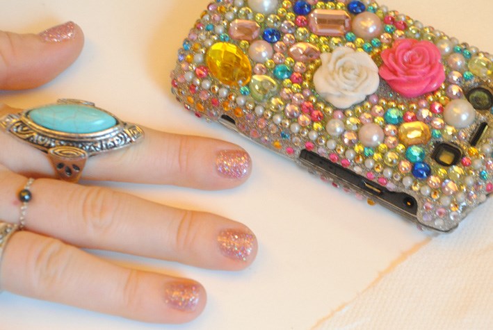 J’ai eu le droit à des ongles violets dont 1/5 à paillettes!