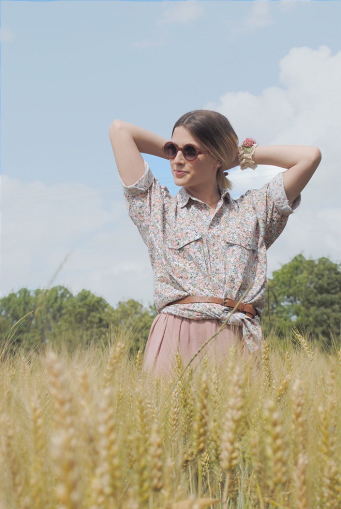 Cette chemise est magnifique avec son doux liberty et parfaitement associée à cette jupe couleur vieux-rose^^!