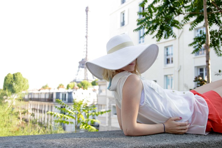 J’ai profité d’un peu de temps libre de mon week-end pour rejoindre Camille Marciano. Je lui parle depuis longtemps de cet endroit précis du 16ème arrondissement. Une murette qui offre une vue imprenable sur la tour Eiffel, de beaux immeubles parisiens et tout ça en même temps. J’avais déjà fait des photos là-bas que je n’ai jamais montré et puis elle m’a proposé une série et je suis très heureuse de celle-ci. Elles retranscrivent à merveille la beauté de l’endroit.