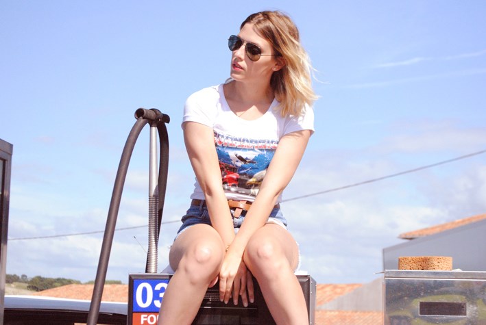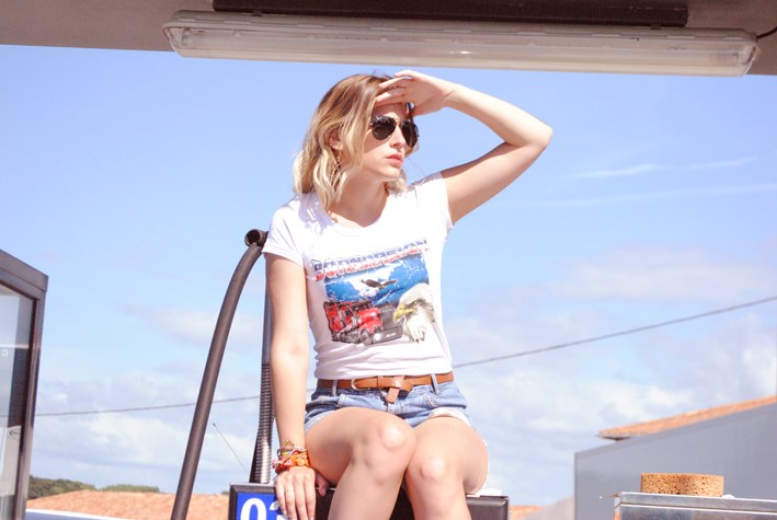 Tu fais bien style américain avec le short en jean et ce teesh!!!