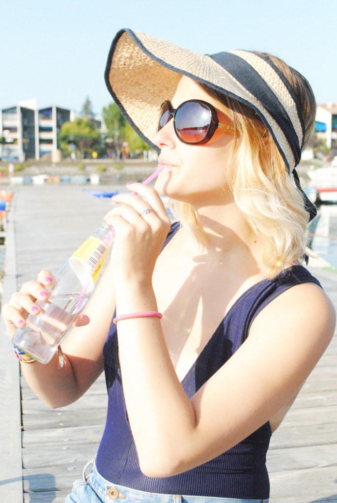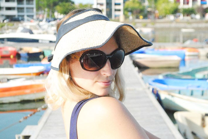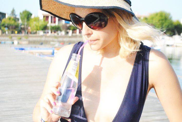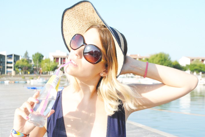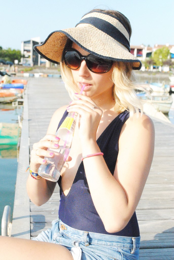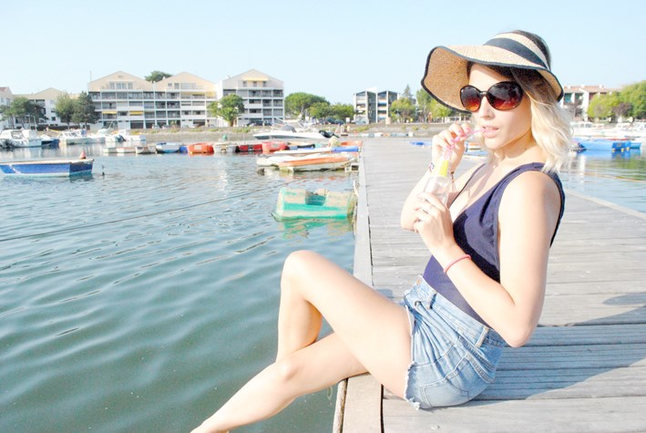 Jolies photos ! J'adore ton short et ta capeline ! Jolie maillot de bain vintage !