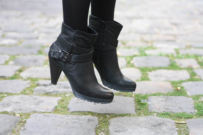 Et tes bottines sont tops. J'adore ce genre de bottines à talons confortables.