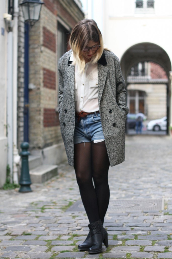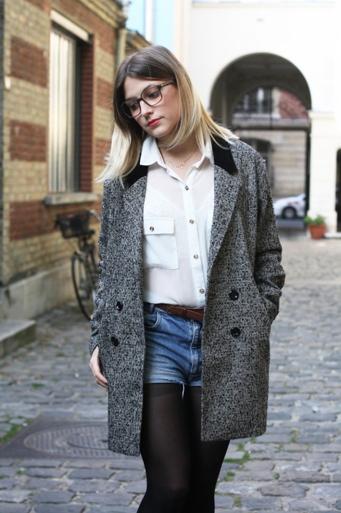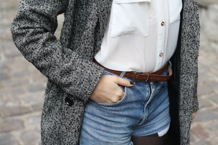 Veste Urban Outfitters, lingerie H&m, chemise New Look, short vintage, ceinture Zara et chaussures Beryl.