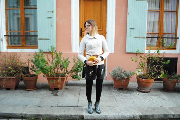 J'ai pas passé long à Paris mais celle ci c'est check! J'aime j'aime j'aime la façon donc tu portes cette robe, avec un pull torsadé par dessus. c'est bien vu 😉