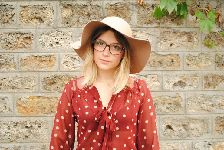 Capeline, blouse et chaussures New Look, pantalon flare Only.