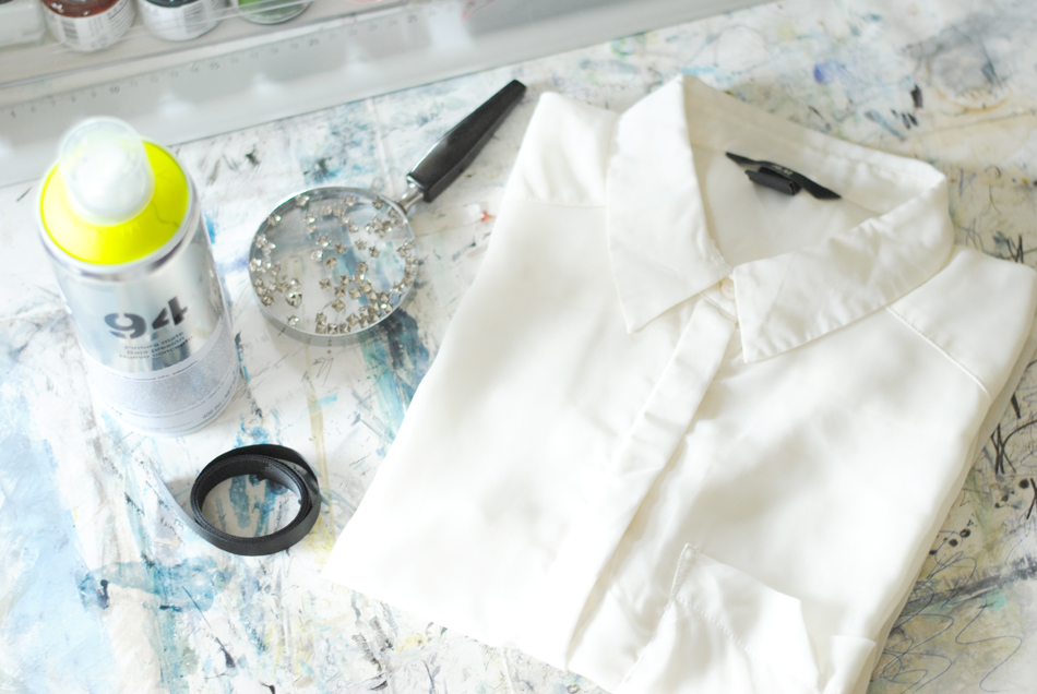 C'est juste superbe ! j'adore ! j'avais justement envie de faire quelque chose avec mon chemisier blanc. Je le mets déjà avec un flot noir comme ici, mais avec les clous, c'est génial.