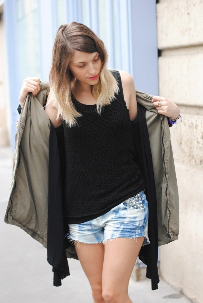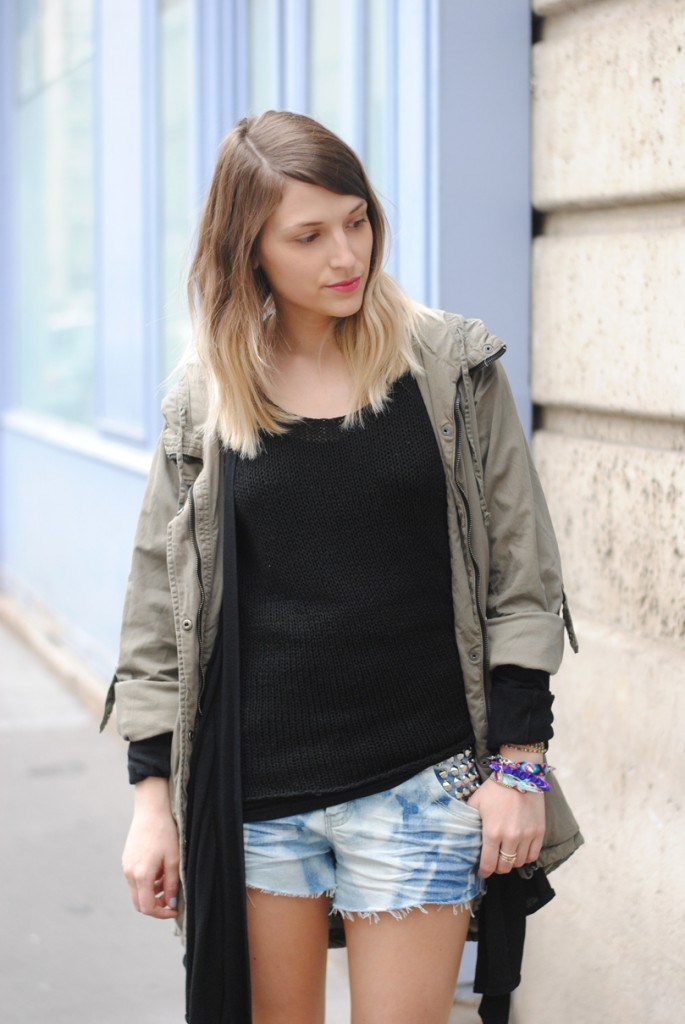 Parka Quiksilver Women, débardeur IRO, maille H&M, short Lenni pour Jennyfer et Ersatz Isabel Marant (boutique Ebay).