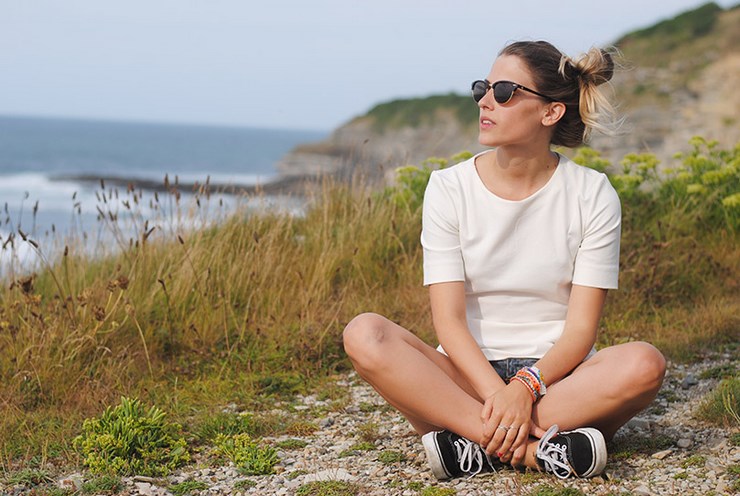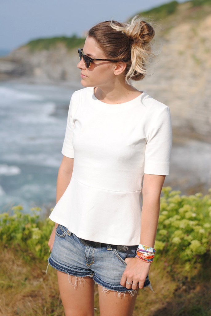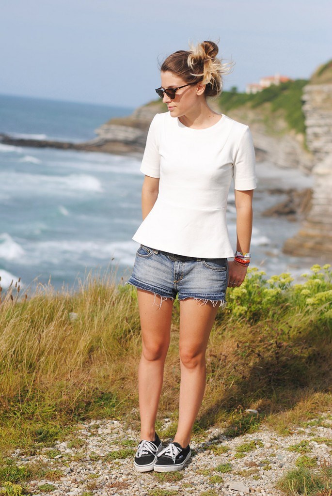Top péplum Mango, short H&M (old), ceinture Bershka (old), Vans, manchette Hipanema et lunettes de soleil Ray Ban.