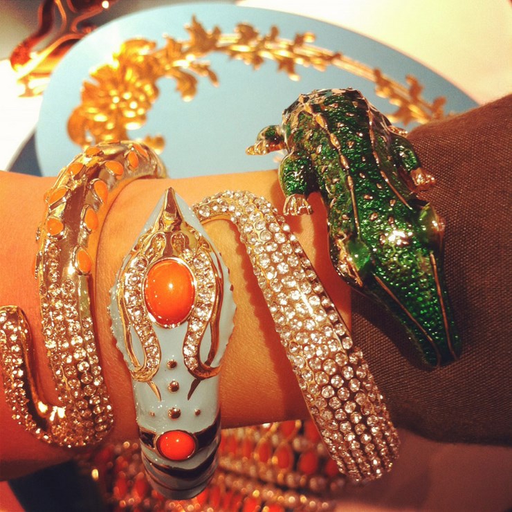 Ma wish list : le collier orange ci-dessus, le bracelet serpent doré et turquoise mais aussi le crocodile. Sur un sweat gris chiné ou un pull en grosses mailles ça va être juste top.