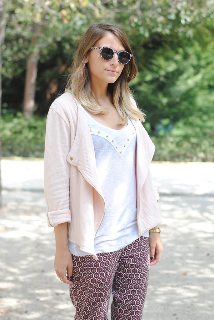 16 septembre 2012 at 17 h 04 minJ'aime bien le motif de ton pantalon et la veste perfecto est vraiment tres cool surtout ce rose pale