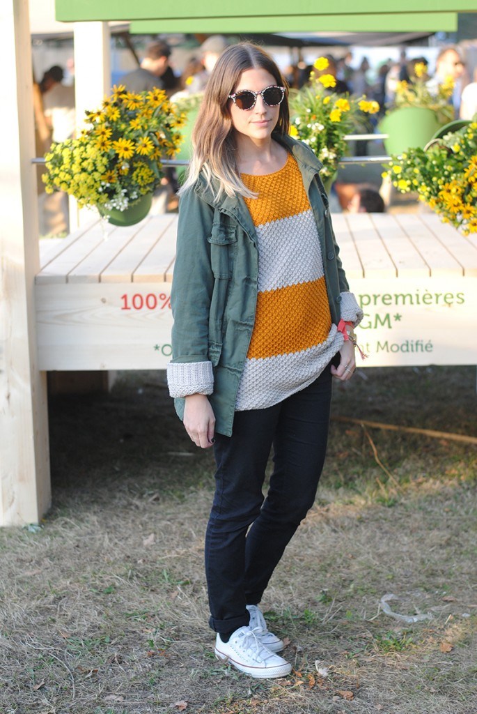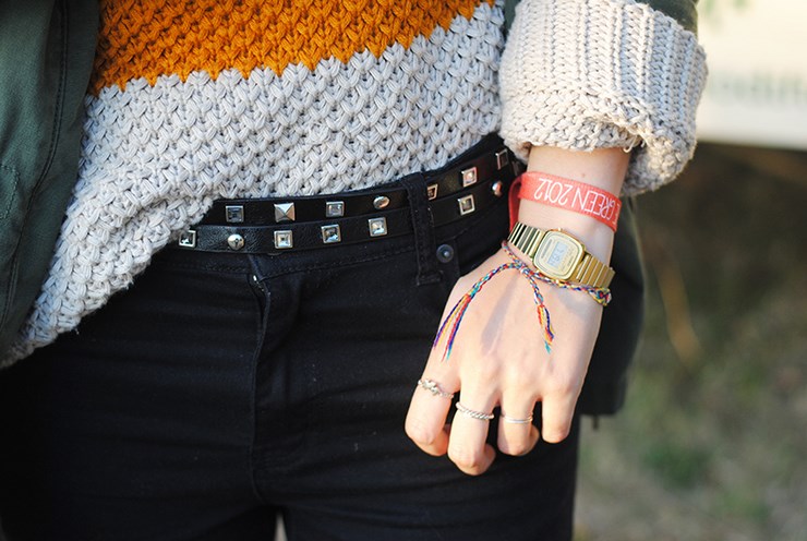 Look du jour : veste Urban Outfitters, pull Gemo, ceinture Zara Kids (2002), slim Cheap Monday, lunettes H&M et Converse DIY.