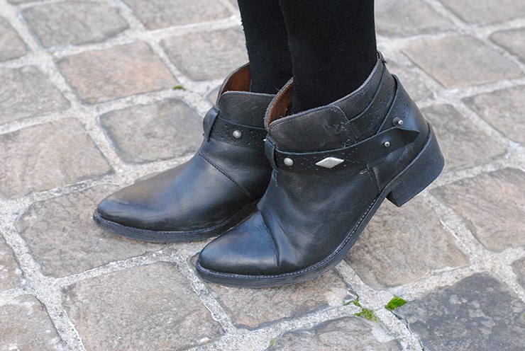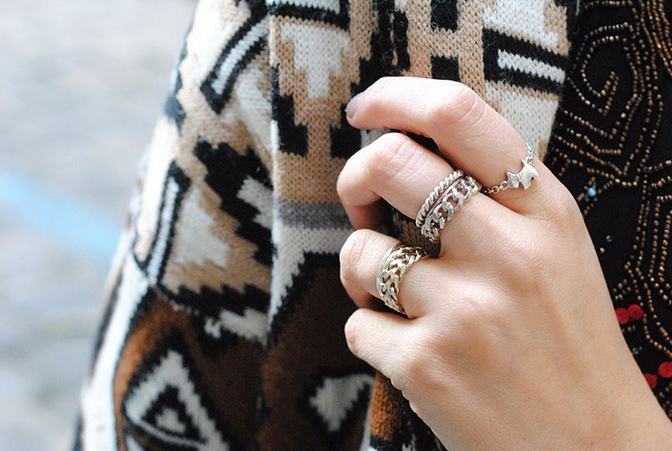 Gilet et Robe Derhy, sac Urban Outfitters, boots Koah via Sarenza et bagues Mademoiselle Pierre.