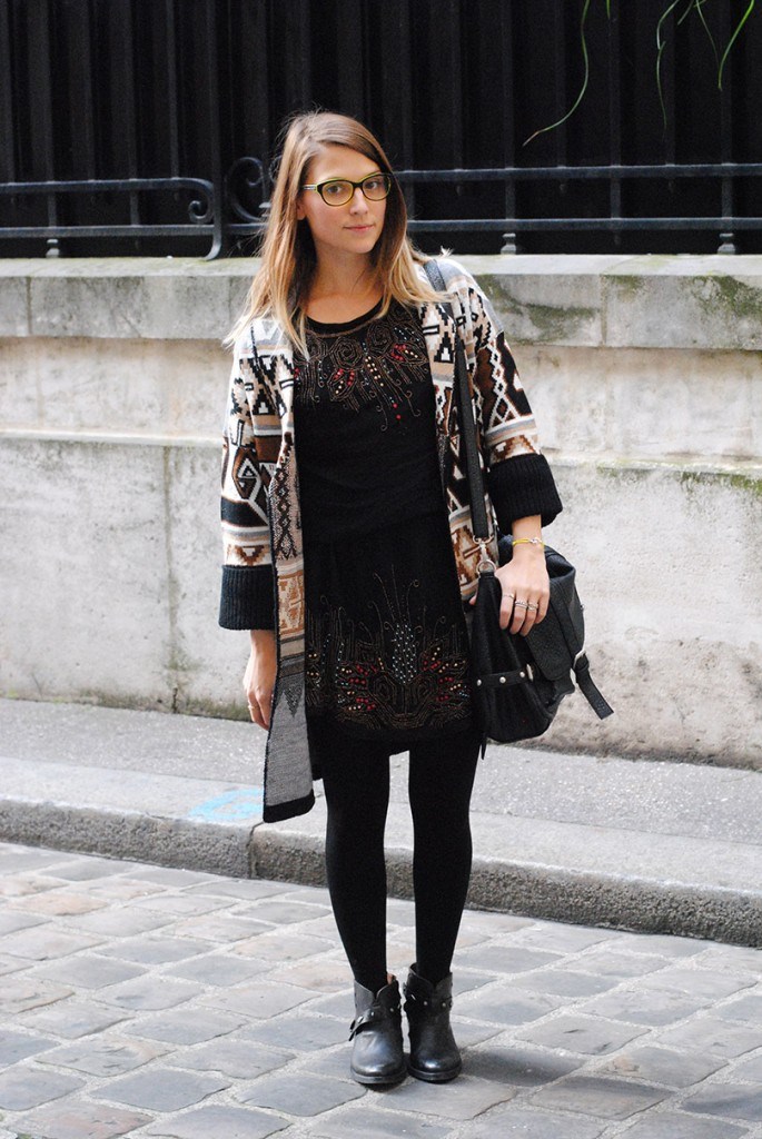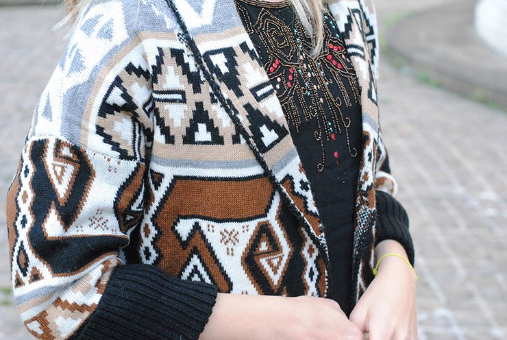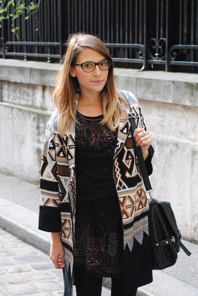 Aaa trop joli !!! Mais ne t'inquiète pas, même si la lumière n'a pas l'orangé d'un beau soleil d'été, tes photos sont toujours aussi belles ! J'adore ce look ethnique, les motifs, la longueur de la robe et de la veste, le petit côté confortable qui me séduit, j'adore tout ! Et ton vernis c'est quoi ? j'ai cru entr'apercevoir des paillettes….