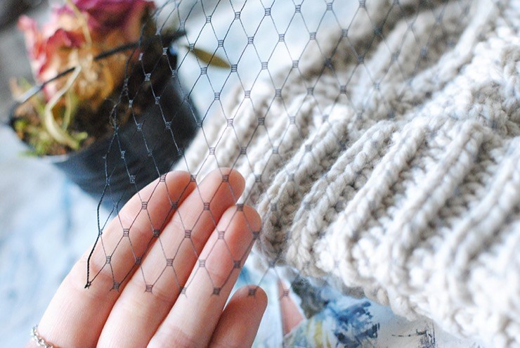 Découper la voilette dans la longueur (compter la hauteur du bonnet plus 10 cm).