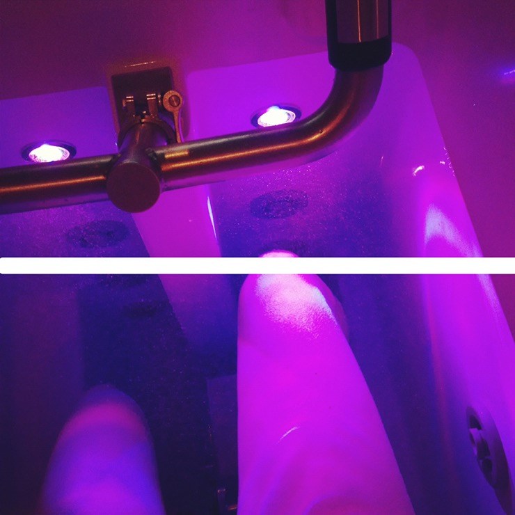 Il s’agit de caissons individuels dans des cabines avec télé et magazines. Les cloisons sont communicantes, vous pouvez vous en douter, on a préféré les laisser ouvertes avec Valentine. Après chaque séance l’eau est renouvelée, la cabine et le vélo sont désinfectés. Un vrai luxe.