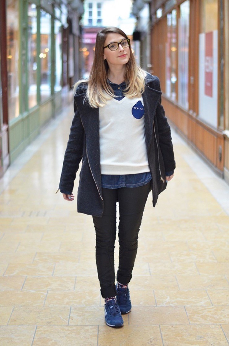 Manteau Vintage (autre ici), pull cachemire Uniqlo, chemise en jean Wrangler, pantalon Freeman T Porter, sneakers New Balance via Sarenza et chaussettes Primark (autres ici).