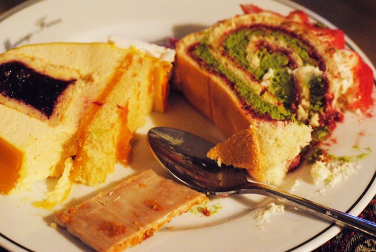 C’est le salé qui m’a le plus surprise : sandwichs au saumon fumé et crème d’aneth dans du pain au thé vert Matcha, un délice.