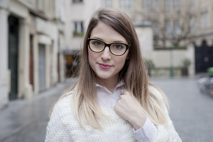 C'est vraiment tout doux comme look, j'aime beaucoup, avec la petite touche des lunettes et boots noires c'est parfait 🙂