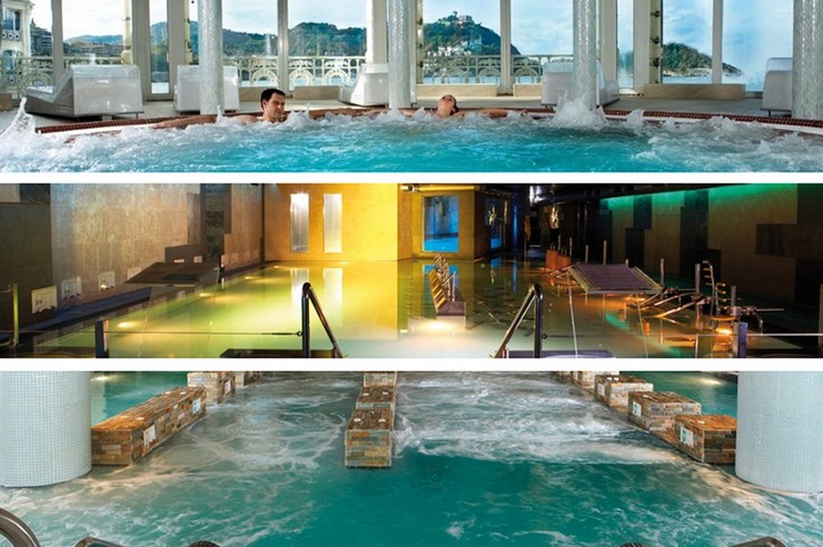 La Perla est une Thalasso dans le centre ville de San Sebastian. Elle est placée littéralement au bord de la mer, en plein milieu de la Concha. Les vagues se cassent sur les vitres autour des jacuzzis.