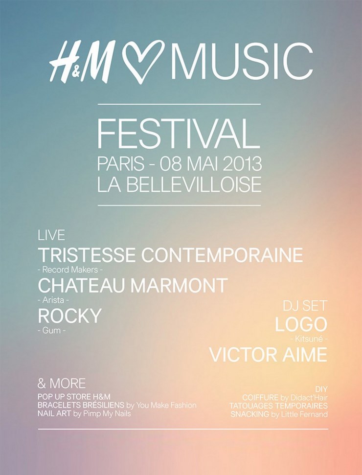 looks de festivals comme Coachella, Glastonbury et Ibiza; H&M organise son propre festival le 8 mai prochain, à