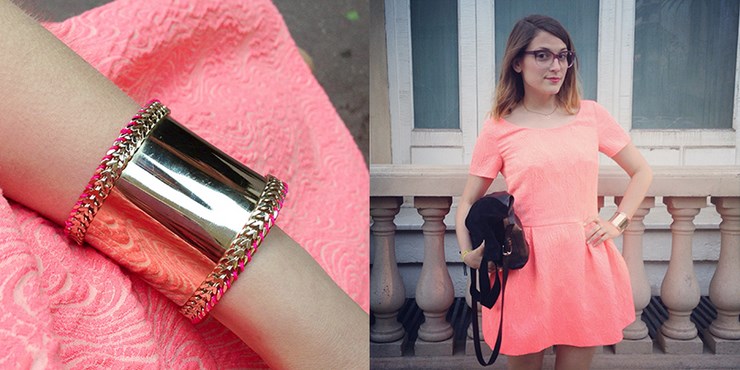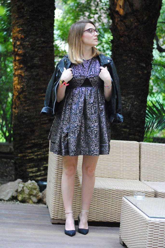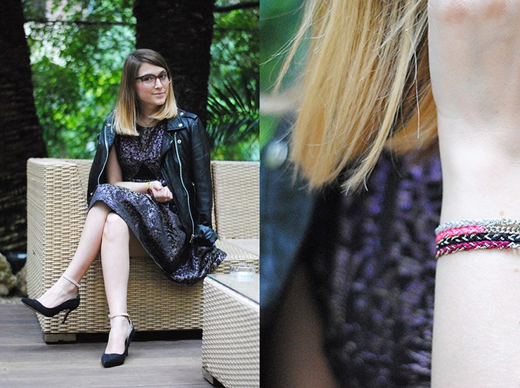 Veste La Canadienne, robe Eleven Paris (collection hiver 2014), escarpins Zara et bracelets Mademoiselle Pierre.