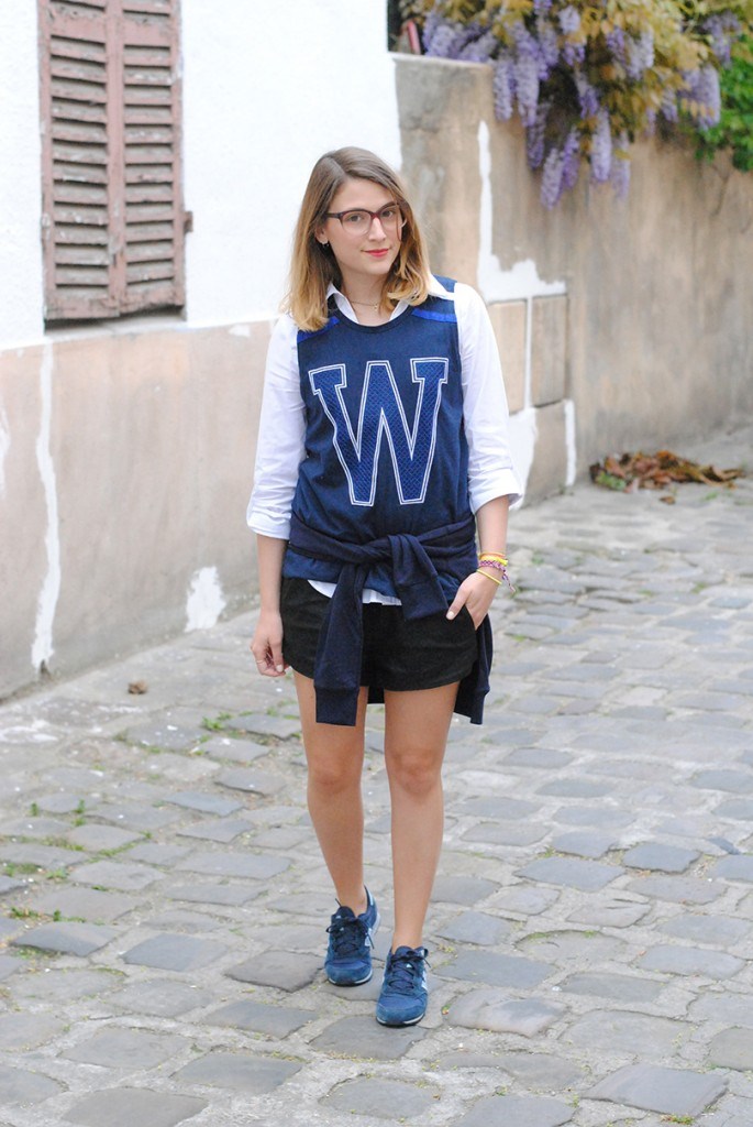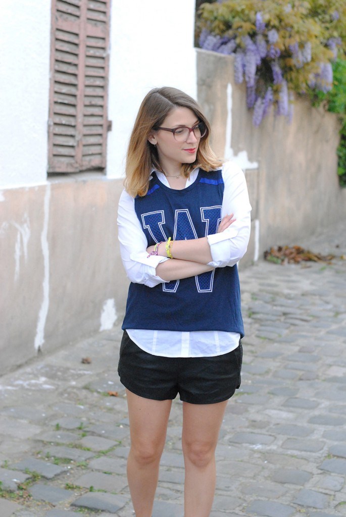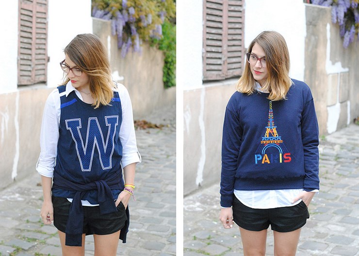 chemise et top Jennyfer, short Zara, sweat PARIS Sheinside, sneakers New Balance