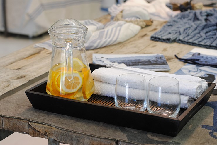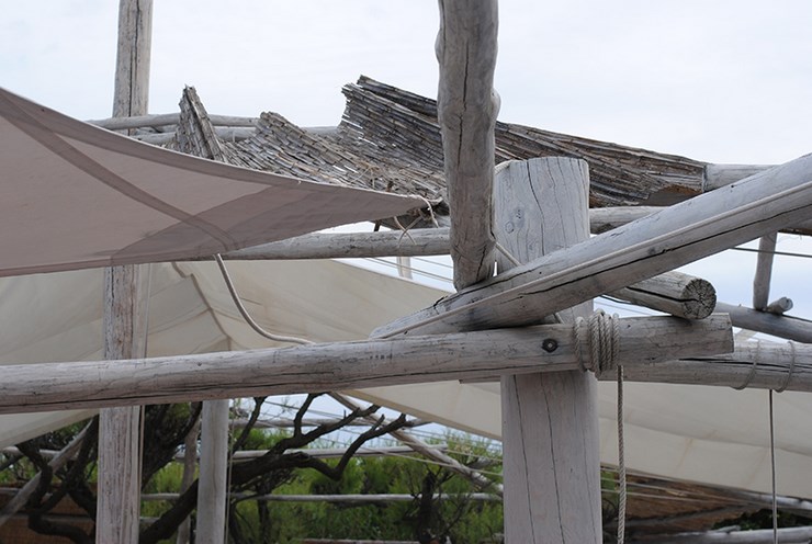 Les tables sont à l’ombre des tentes et des paillotes. Ambiance cabane de Robinsons.