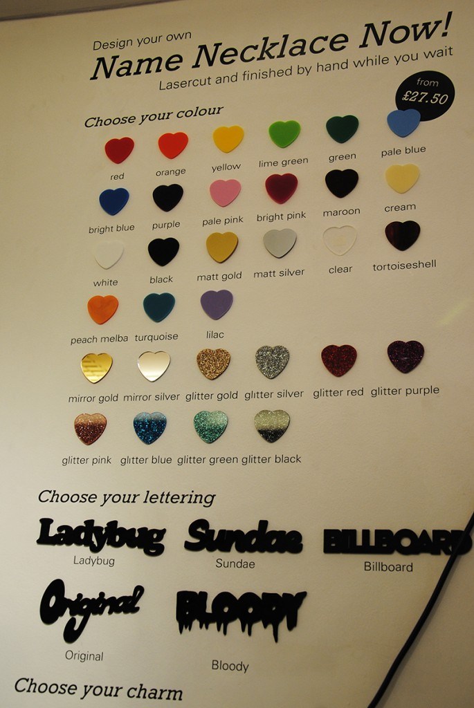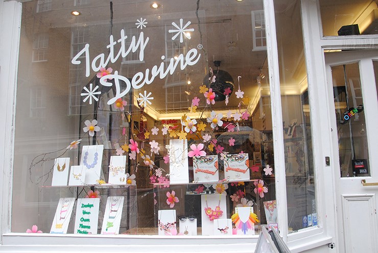 Via le blog de Katia et Betty je connaissais les créations délirantes de Tatty Devine. J’ai couru dans sa boutique londonienne dès que je l’ai aperçu dans le rue Monmouth. Sur place il est possible de créer son bijou personnalisé ou de s’offrir un modèle signé par la divine tatie.