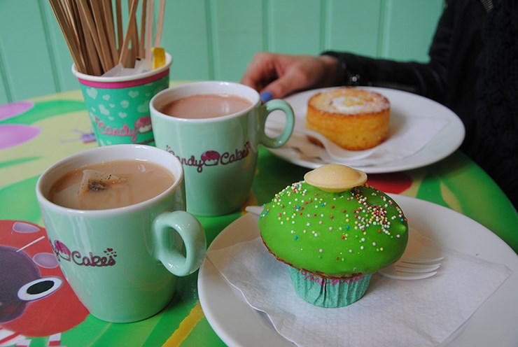 Candy Cakes, une chaine de cup cakes colorés que l’on peut retrouver partout dans Londres. Ce ne sont pas les meilleurs mais les plus orignaux. Il s’est mis à pleuvoir pile quand je me suis retrouvée devant une de leurs boutiques rue Monmouth. Pas le choix ^^ on est rentrée prendre le goûter avec mon amie.