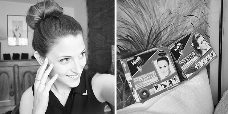 J’ai été invitée à tester les nouveaux accessoires Vivelle DOP : un amplificateur de chignon et un réhausseur de coiffure. Le premier est un bun (ou beignet) pour les chignons « de danseuses ». Le + : des épingles sont incluses dans le kit.